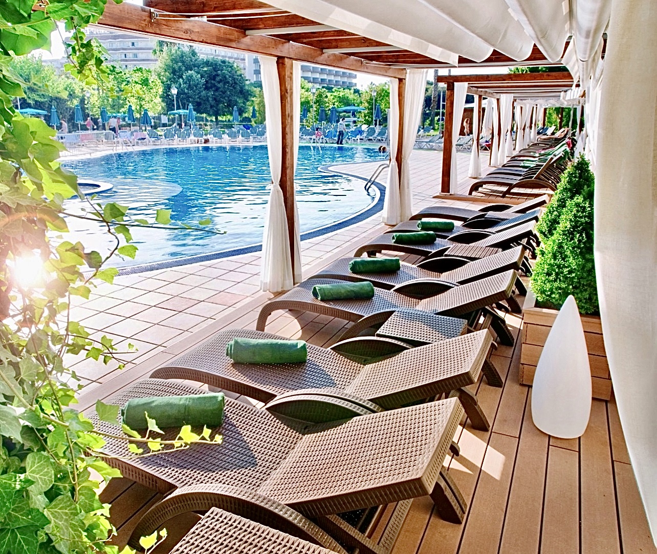 The hotel also offers rooms with a Premium option which includes : a sea/pool view room, access tp the SPA, safe and fridge. This option (100€) is available when booking online.